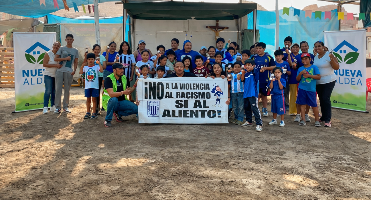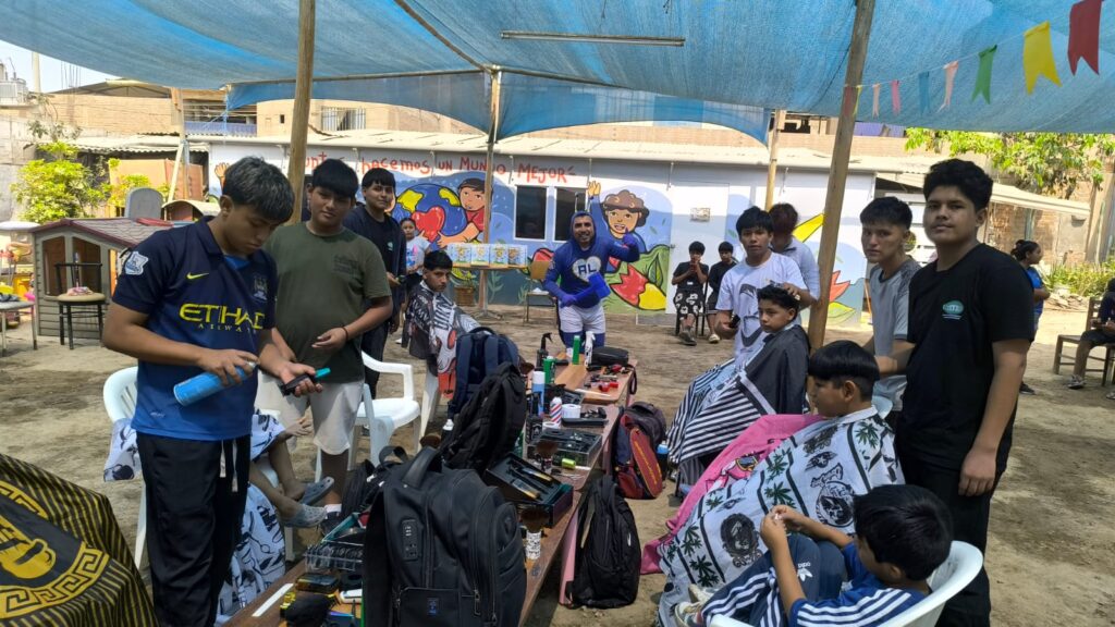 La Asociación Nueva Aldea realizó una jornada solidaria en la ludoteca Hijos de María, donde decenas de niños participaron en una campaña gratuita de corte de cabello, recibieron útiles escolares y se sumaron a un mensaje público a favor de un deporte sin violencia.